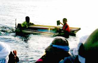 | These boys paddled out using these bits of wood to sing for the tourists - in the hope of some money. |