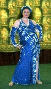 A couple of days later we went to Aida Nour’s. This was much smaller establishment. Aida’s costumes displayed an original flair and her prices were very good. However, committed to two costumes from Madame I couldn’t contemplate another from Aida. Except, perhaps, a white silk galibaya - like Fifi (as shown here by Maria). But some did weaken - and ordered yet more beautiful costumes. These to be picked up when we got to Alexandria.